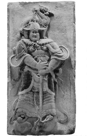 2000年安思远捐赠给中国国家博物馆的五代王处直墓汉白玉彩绘浮雕武士石板。