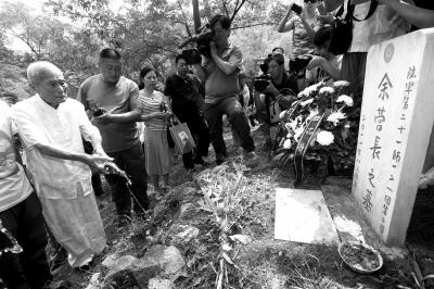 昨天上午,昌平南口贾房子村的一个不起眼的小山坡半山腰,南口战役的亲历者贾善明和许多亲历者的后代静静伫立在一块只有姓没有名的墓碑前。碑很小,上书“余营长之墓”。