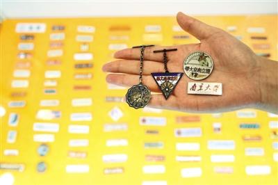 8月1日至5日,徽映青春——中国大学校徽联展在三联书店韬奋图书馆开展,共有自民国到新中国时期各类高等院校的1000余枚校徽参展。据策展人陈强介绍,本次展出旨在通过这些小小的校徽,使人追忆起青春往事,共同怀念青春岁月。图为南大校徽的变迁。 新京报记者 李飞 摄影报道
