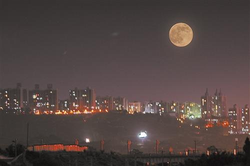 最大最圆"超级月亮"天空呈现 视直径增14%(图)