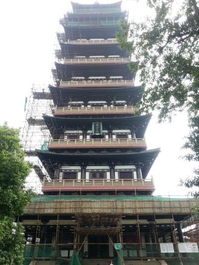 “这是栖灵塔复建20年来的第一次大修,总投资大约300多万元。维修工作从6月底开始,施工人员克服高温多雨等恶劣天气,目前已经完成了95%的施工量,有望在月底完成修缮工作。”在栖灵塔施工现场,工程负责人陈总介绍说,为不影响游客的观赏效果,施工采取的是维修好一层,即拆除一层施工脚手架的方式,目前已经拆除了1-7层施工脚手架。工程全部完工后,栖灵塔将以崭新的面容呈现在参加“运博会”的中外嘉宾面前。