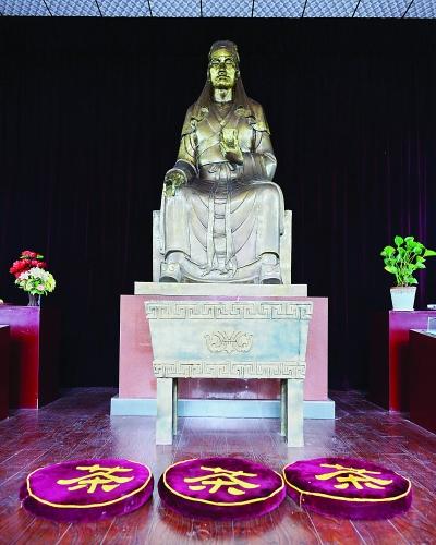 8月18日采访团探访陆羽纪念馆。图为馆内陆羽铜像 特派记者胡冬冬 摄