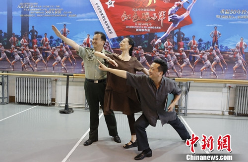中新网北京8月21日电(唐云云) 8月21日上午,中央芭蕾舞团在北京召开“纪念经典芭蕾舞剧《红色娘子军》首演50周年——2014年9月23日人民大会堂大型纪念演出” 新闻发布会,标志着此次大型纪念演出正式启动。中芭团长冯英、副团长王全兴,特邀嘉宾郁钧剑、黄宏等出席了发布会。