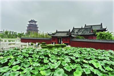 18日,采访团车队一下高速,沿陆羽大道驶入天门,即看到这建于平原上的城市中,一座造型奇特的木制方塔,高高矗立在前方。木塔再往前,是一座高大的汉白玉雕像。