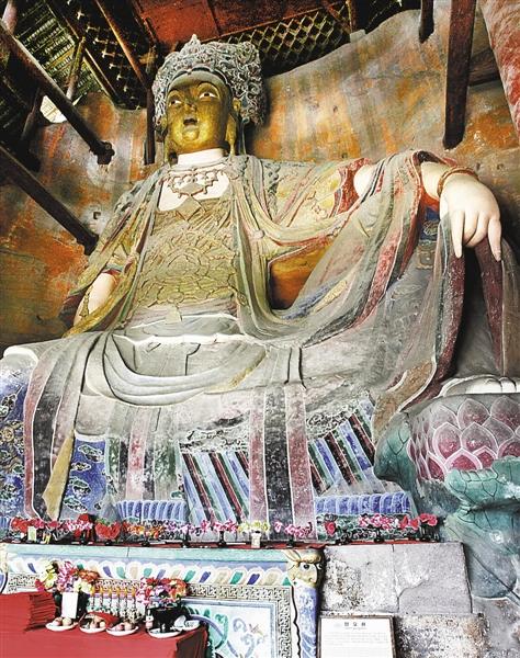 “根据史料记载,佛像只在明清时期做过重新彩绘,而造像本身历经千年风雨,至今仍然保存完好,或许与佛像脚下这口‘圣水’有很大的关系。”罗君说。