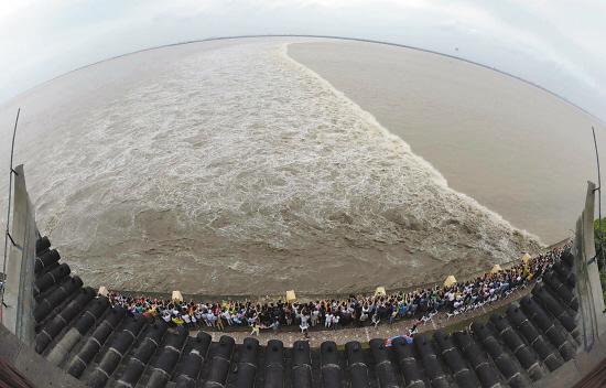农历八月十八钱塘江呈现壮观“一线潮”(图)