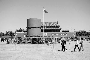 昨天,天安门广场中心花坛的底座架子和中心圆筒立柱已经安装到位。晨报记者 史春阳/摄