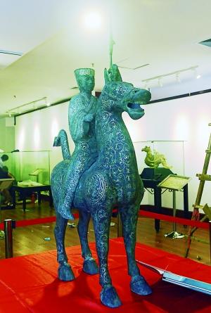 ▲汉代青铜错银仪仗骑马人。麦玉兰收藏。