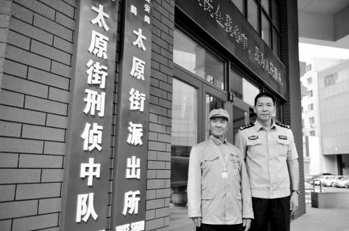 张吉昌(左)在太原街派出所门前留影纪念