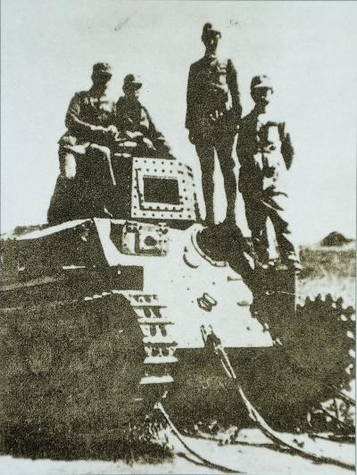 在台儿庄战役中缴获的侵华日军坦克。