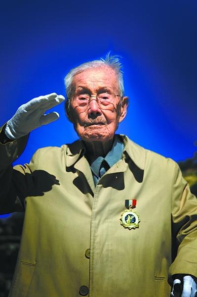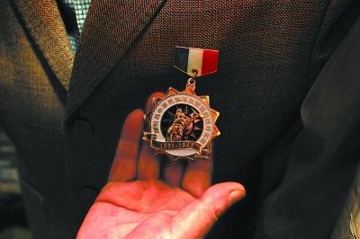 志愿者给老人送来勋章。