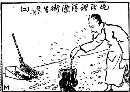 参与互动(0) 七、痰涕横流 痰涕横流,让人恶心。1930年卫生部给湖南省民政厅行文,强调要禁止随地吐痰。长沙自1921年始即设置街头公开痰盂。对随地吐痰者,长沙市公安局曾制订一个“土政策”,清洗沿街公共痰盂。此举大大降低了城市随地吐痰率。