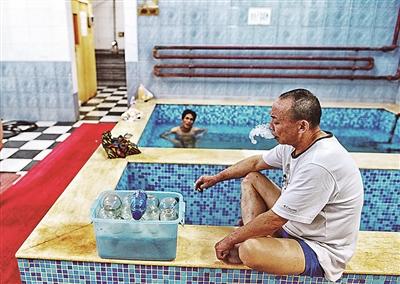 一天的工作快要结束了,搓澡工田师傅坐在池边抽支烟短暂休息一下