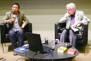 诗人欧阳江河和汉学家顾彬的讲座以《受伤的汉语》为主题。欧阳江河说,我们天天使用的汉语,有人把它当做传递思想、信息和交流的工具,其实语言是人的存在方式,是存在的最重要的一种呈现和凝聚的方式,它本身是疾病、力量、虚无和思想等各种各样信息的携带者、传递者、呈现者。他们想探讨语言在经过现代性转型,包括经过革命,经过商业大潮,经过东西方的相遇、融合、翻译等以及经过各种各样的工具理性语言、各种行话技术话语,包括现在存在的网络方式,经过转折、渗透、改造后,它变成了什么?