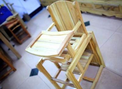 在微信朋友圈里,段小姐重点展示的是一套宝宝椅。因为段小姐已经怀孕,小宝宝会在明年出生,要做外公的老段特意做了这套椅子。和市场上卖的宝宝椅不同,这套椅子可以拆装,把上面当作椅子的部分抽出来,再把下面的架子横过来就变成了一张矮桌和一把小椅子。“我这个宝宝椅能让孩子坐着,还能站着,再长大点还可以变成小孩的餐桌餐椅,至少能用到5岁。”