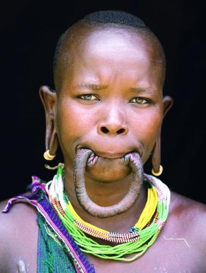 埃塞俄比亚一女子戴世界最大唇盘:直径约20厘米
