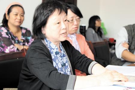 图为袁植的大孙女袁为群在介绍爷爷的相关情况。刘炬 摄