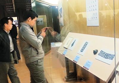10月16日,中国社会科学院等部门机构的专家从旅顺博物馆馆藏1800多片从未公布过的罕见甲骨中,发现了34个新字和新字形。图为观众在参观新展出的甲骨。