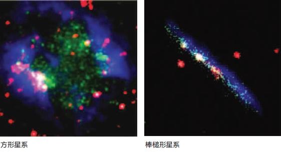 “之所以选中它们,一是离地球较近,分别距离地球大约500万光年和7000万光年,二是它们的亮度较高,利于观测。”施勇向记者展示了这次观测的两个恒星星系图片:一个是方形的,一个是棒槌形的。在对这两个恒星星系进行观测后,施勇他们发现远古恒星的形成效率远低于类银河系星系里的恒星形成效率,如果后者形成一颗恒星要1000万年,那么前者则要10亿年,大约相差100倍,也就是说恒星的祖先们“出生率”很低。