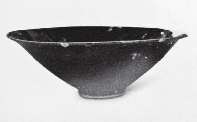 文集遗址出土的黑釉折沿瓷碗 翻拍资料照片