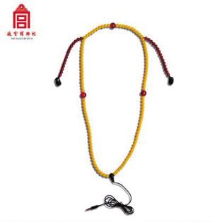 将象征身份与地位的朝珠与现代电子产品结合,材料为仿蜜蜡,佩戴时肩部两侧延伸出入耳式耳机,底部为插口接头,被评为“戴上感觉在批奏折”。 图源:故宫淘宝店