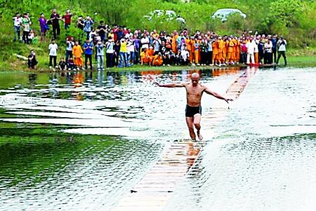 少林武僧亮轻功“水上漂” “漂”出118米创纪录