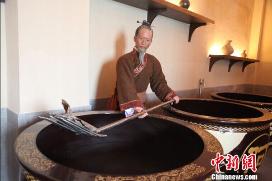 据了解,阿胶应用已有3000年历史,最初用牛皮熬制,直至唐代,人们才开始用驴皮熬制阿胶,并改进了炮制方法,药物功效更佳,沿用至今。因此,馆内不仅陈列着各类藏品,还通过蜡像人来模拟古代场景及动作,形象地展现了洗皮、熬制、炼胶等一系列阿胶的制作过程。