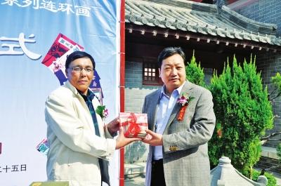 本报讯10月25日上午,中国优秀收藏专家姚嘉康捐赠《秦香莲》、《铡美案》系列连环画交接仪式在开封市开封府景区举行。