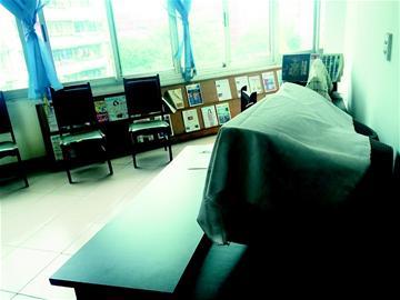 昨日上午,天府早报记者到达青羊区中鹏社区时,在十来平方米的社区图书室内,没有一名借阅者。在4楼的社区图书室中,既有图书也有杂志,书架间已蒙上了灰尘。
