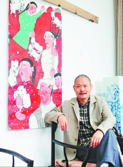 戴少龙的画中,朱砂红被大量运用,这代表中国文化符号;画中的羊和女性,代表着与人为善的美德;多种元素融合,表达他对现实生活的反思。“现代文明进程中,那些质朴、温暖的东西正在慢慢消逝。作为艺术家需要去关注、去唤醒,这是我们应有的责任”。