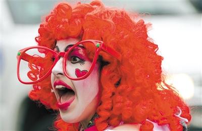 11月16日,在加拿大多伦多,一位小丑在游行中表演。