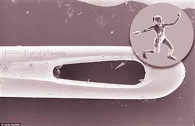 经过10个月的努力,英国一名艺术家利用3D打印技术创作出7个微雕人像。这些雕像中最大的仅有人类发丝宽度一半般大小(如图),可以被放在蚂蚁的头上,或者缝衣针的针孔上。