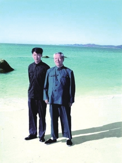1978年8月,习仲勋与参加暑期社会实践活动的习近平在海南。均由出版方供图