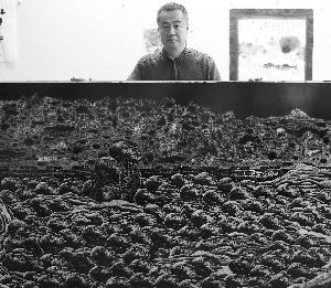 刘春杰的办公室里,倚墙靠着一幅黑白版画,画面上的内容让人看了心情沉闷。画面上,明城墙下堆满尸体,一个个的头颅,表情各不相同,有的表情痛苦无比,有的眼睛都没睁开;正中,两张绝望的脸昂起,双手向上,似乎在挣扎,又似乎在祈望……