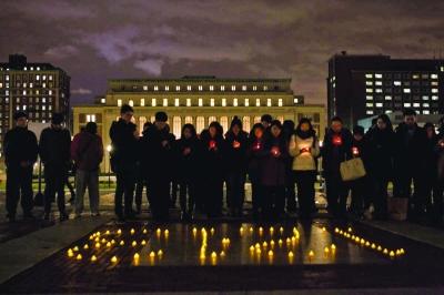 美国东部时间12月12日晚,悼念南京大屠杀死难者的烛光守夜活动在纽约、剑桥和费城的三所大学校园举行,与南京公祭仪式同步开始,全球共祭。