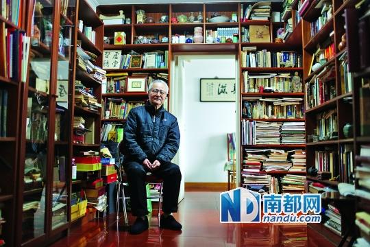 童道明的家在潘家园附近。一出电梯门,就看到笑盈盈的老先生迎候着我们。他的书,分布在同一栋楼的两所房子里。