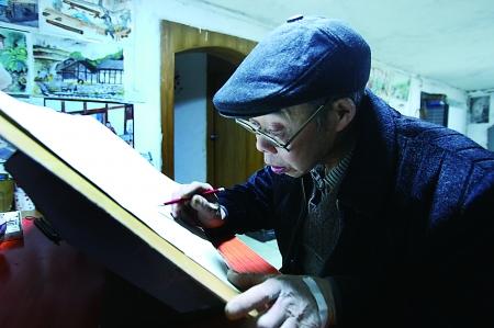 张才柱老人在创作 记者 蒋雨龙 摄