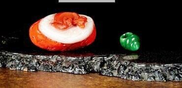 作品上分层俏色的绝佳设计,加以出神入化的雕刻工艺,赋予作品以别样的情致与格调。别出心裁的碧玉小螺点缀于旁,将视觉切换由宏观至围观,呈现出不一样的立体感。