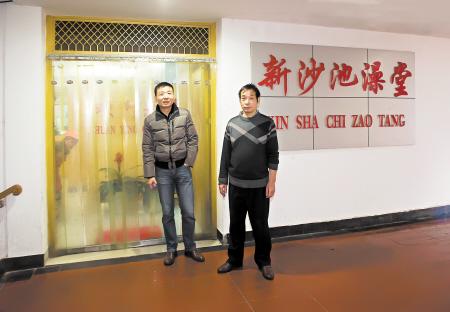老长沙洗浴业头块金字招牌新沙池,在时代变迁中,已显寂寞。相片中左立者为现新沙池负责人刘勇。均为徐晖铭 摄