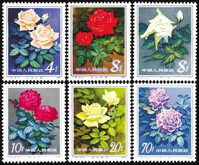 1984年4月20日,中国邮政发行志号为T93的《月季花》特种邮票。据珠海市集邮协会秘书长曾繁裕介绍,邮票全套6枚,分别为“上海之春”、“浦江朝霞”、“珍珠”、“黑旋风”,“战地黄花”、“青凤”。这套《月季花》邮票采用水粉画技法,以深底色泽衬托艳丽的花朵,在色调的安排上,将黄、白、粉、红、紫、青互相岔开,富于变化。6个品种的月季花各具特色和神韵:“上海之春”淡雅庄重;“浦江朝霞”和“黑旋风”鲜艳活泼;“珍珠”和“战地黄花”悦目赏心;“青凤”则祥和迷人。