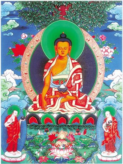 希热布的彩唐作品“释迦牟尼佛与二侍者”