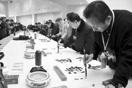 在太原美术馆展厅内,数十名书画家一起挥毫泼墨,在25.58米的长卷上题诗作画、尽情挥洒。《虾趣图》活灵活现,山水画意境阔远,草书肆意潇洒。闻讯前来观看的太原市民张先生说,太原美术馆开馆以来,陆续举办了很多艺术交流活动。希望今后多举办高水平、有功力的艺术交流活动,提升太原城市品位。