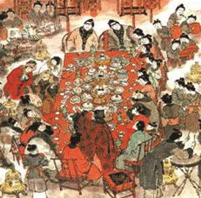 除夕夜宴再现了《红楼梦》中第五十三回“宁国府除夕祭宗祠 荣国府元宵开夜宴”的场景。在奢华的场景中,两府人物活灵活现地跃然纸上,让人感慨贵族们奢靡生活。