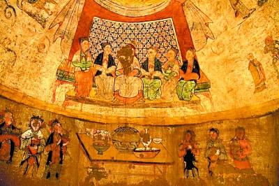 图为墓主夫妇6人并坐宴饮图。资料图片