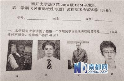 南开大学神考题:任课老师照片选不对扣41分(图)