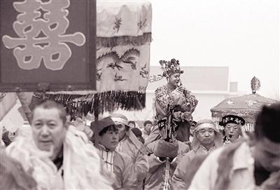 舞狮开道、凤冠霞帔、八抬大轿……北京昌平北七家镇羊各庄新村的孙先生和王小姐19日上午用一场传统但环保的婚礼喜结良缘。