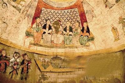 陕西元代壁画墓现夫妇6人宴饮图(图)