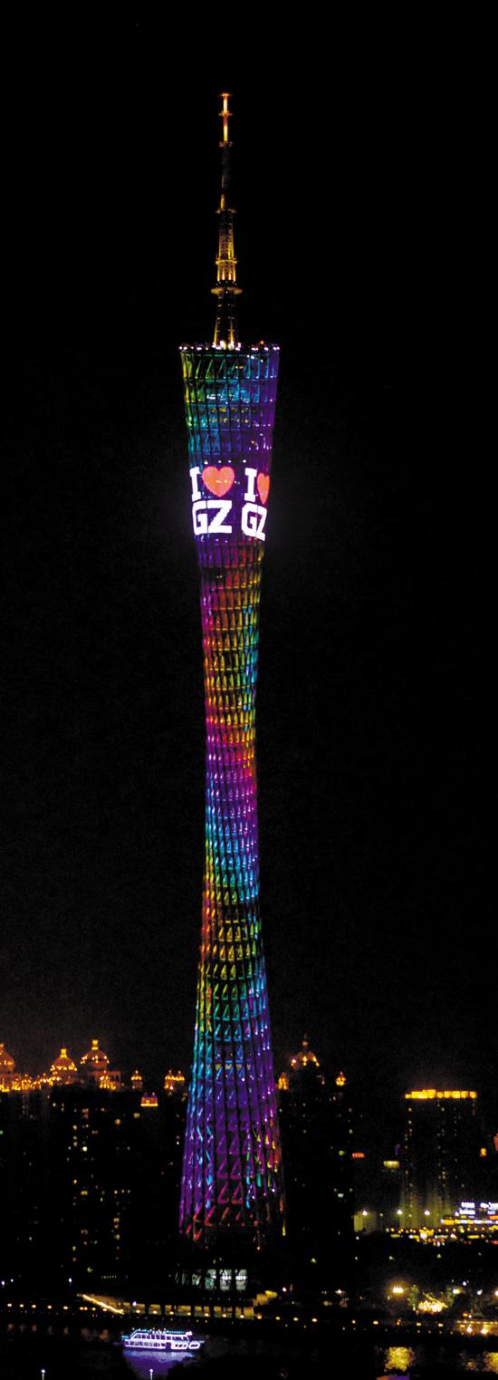 入夜后,广州塔上出现了“I love GZ"图案 记者 汤铭明 摄
