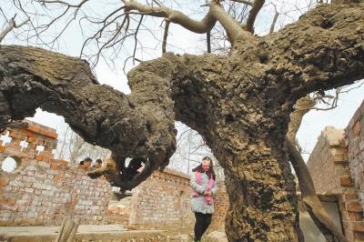 郑州某村拆迁只剩废墟 两棵古槐树命运堪忧(图)