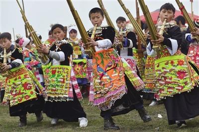 2月26日,苗族小伙子在跳花坡活动中吹奏芦笙曲。当日是农历正月初八,贵州省黔南布依族苗族自治州龙里县草原乡幸福村的苗族同胞身着节日盛装,聚集在咋哨大草坪跳花场,举行一年一度的跳花坡民俗活动。苗族群众用这种传统的庆祝方式祈愿新的一年风调雨顺,五谷丰登。